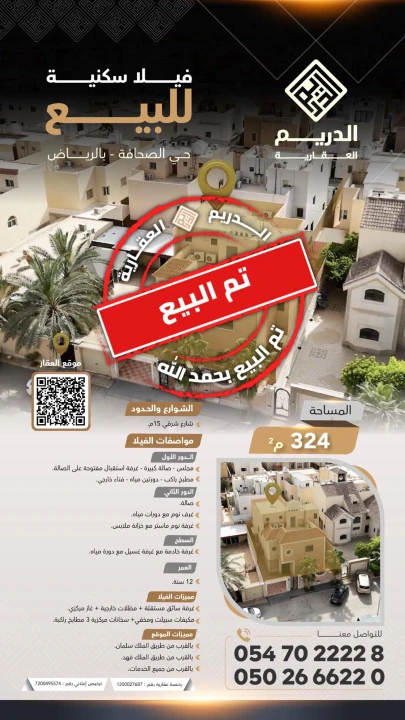 Contact | Villa for Sale in Al Sahafah Dist. | ALDARIM Real Estate