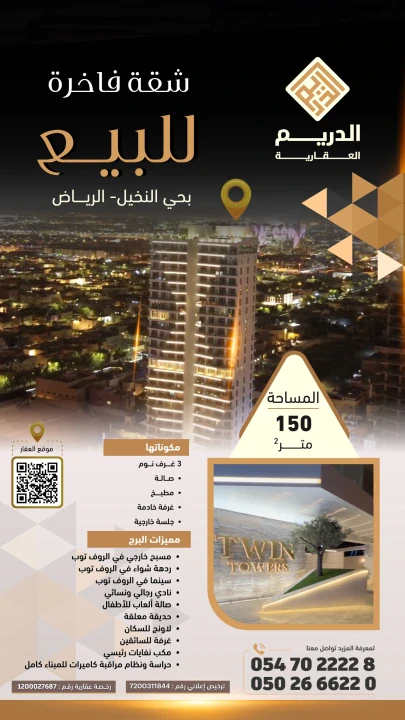 طلب اتصال | شقة في برج للبيع في حي النخيل | الدريم العقارية