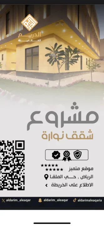 طلب اتصال | شقة في عمارة للبيع في حي الملقا | الدريم العقارية