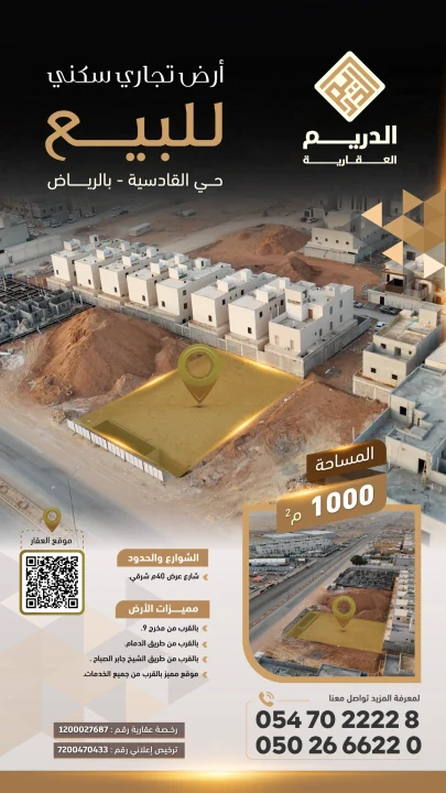طلب اتصال | أرض للبيع في حي القادسية | الدريم العقارية