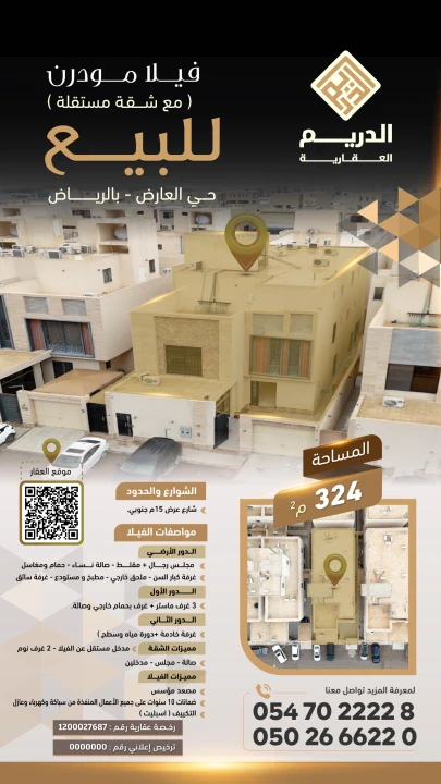 طلب اتصال | فيلا للبيع في حي العارض | الدريم العقارية