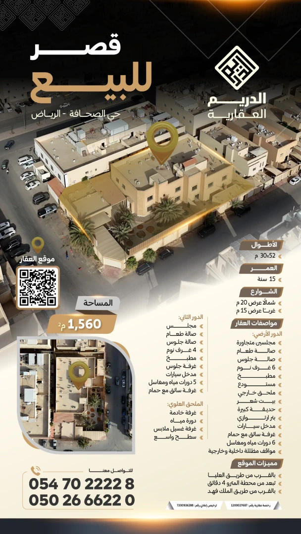 🛑للبيع:قصر في حي الصحافة بالرياض